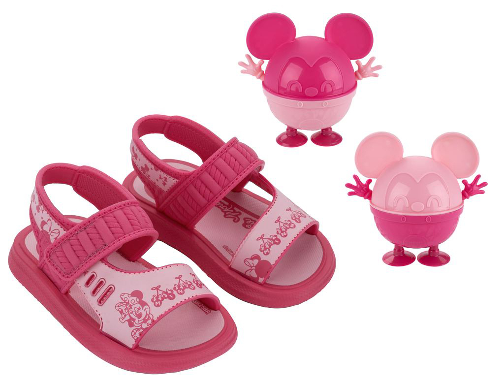 Este novo lançamento traz um potinho dos personagens Stitch, Minnie e Mickey e dois talheres que formam os bracinhos de cada personagem. Um grande diferencial são as duas ventosas, que fazem com que o bebê possa se alimentar sem derrubar a comida. Sandália super versátil para o dia a dia. A sola super macia com serigrafia na palmilha e fechamento em velcro.