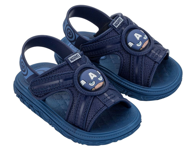 A nova sandália baby Marvel possui detalhes em alta definição, com sobreposições de materiais com aparência realista. Seu design transmite segurança e firmeza através do fechamento em velcro. Para encantar as crianças, um aplique com o rosto do personagem favorito (Homem Aranha, Capitão América e Hulk) agregando ludicidade e valor ao produto.