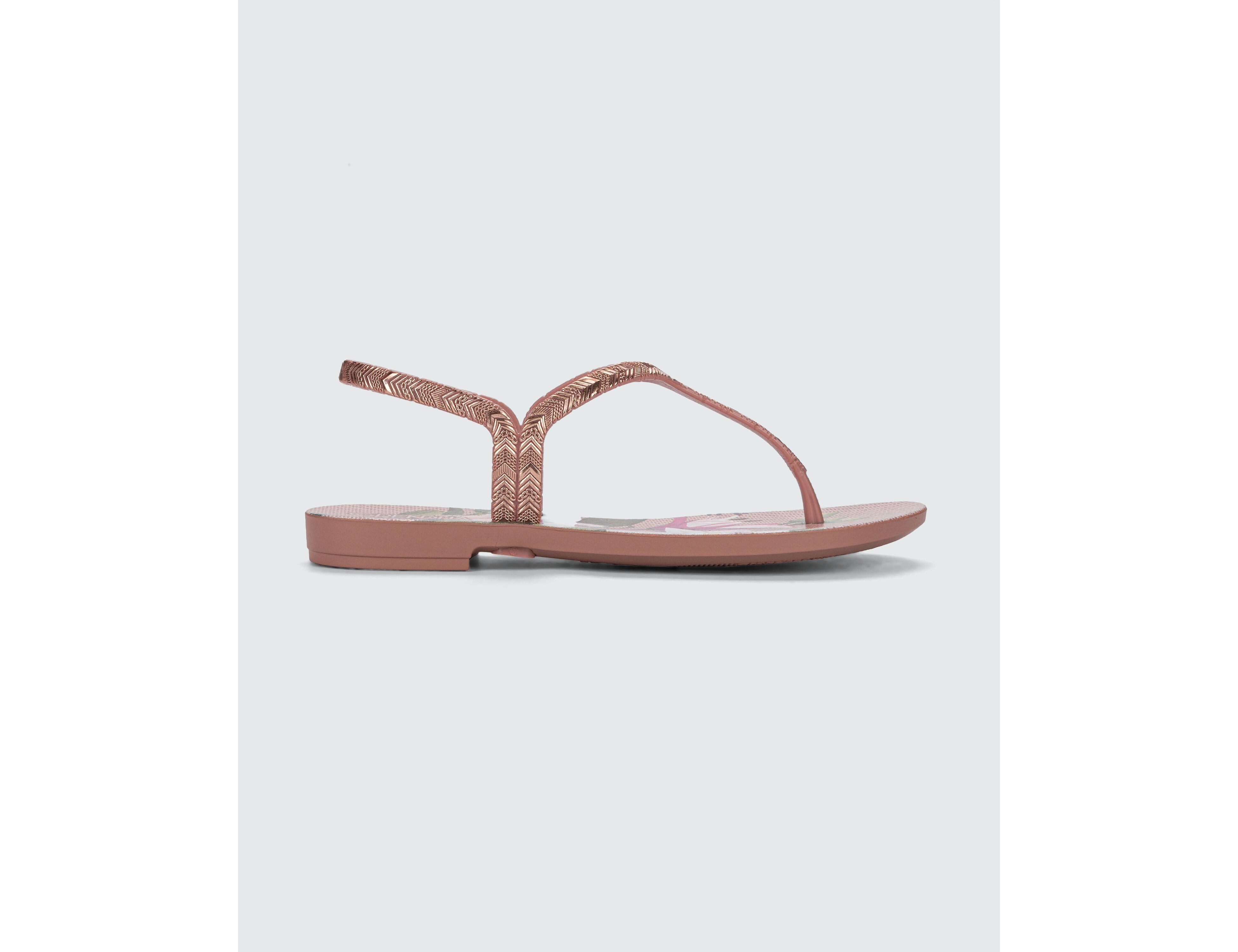 Modelo feminino da linha “Amor em Flor”, com tiras trabalhadas em detalhes metalizados que valorizam o design. As estampas seguem as principais tendências da estação, com destaque para o floral e o listrado em releitura contemporânea. Produzida em materiais resistentes e confortáveis, é uma opção versátil para o uso diário, unindo estilo e elegância. Produto de forte apelo visual, ideal para compor mix feminino com excelente aceitação no mercado e ótima saída para revenda.