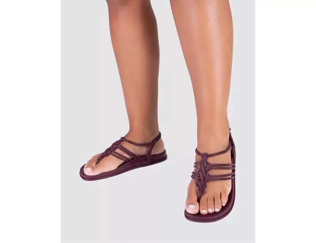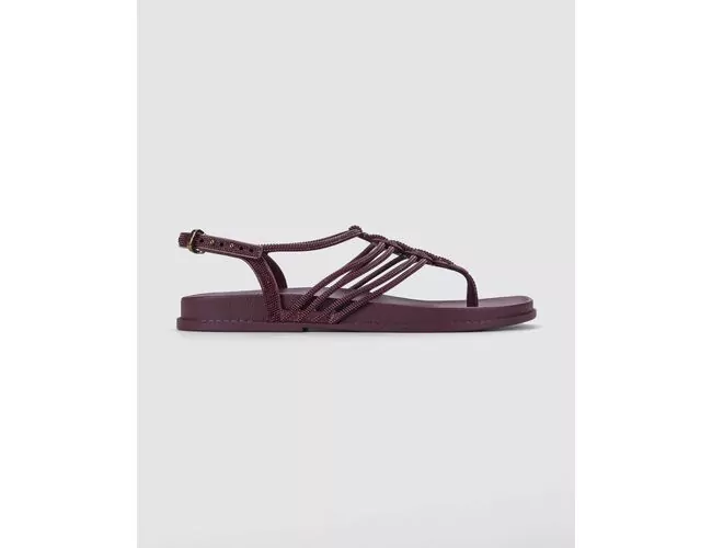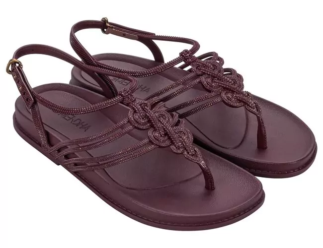 Trançados elaborados e inusitados formam a salomé da nova sandália de Grendha. Suas múltiplas tiras recebem acabamento sofisticado do glitter suave. O fechamento em fivela e o solado anatômico agregam funcionalidade ao lançamento.