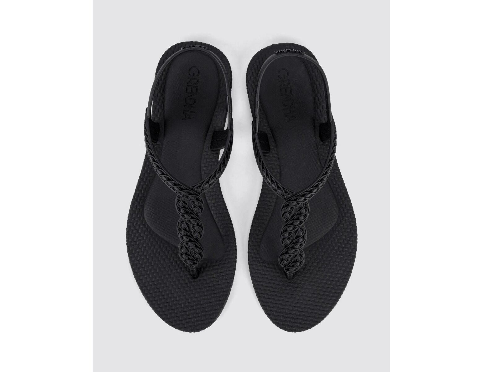 O rico trabalho de detalhamento das joias de filigrana, tradicionalmente portuguesa, inspira as texturas e volumes nesta sandália salomé trançada.