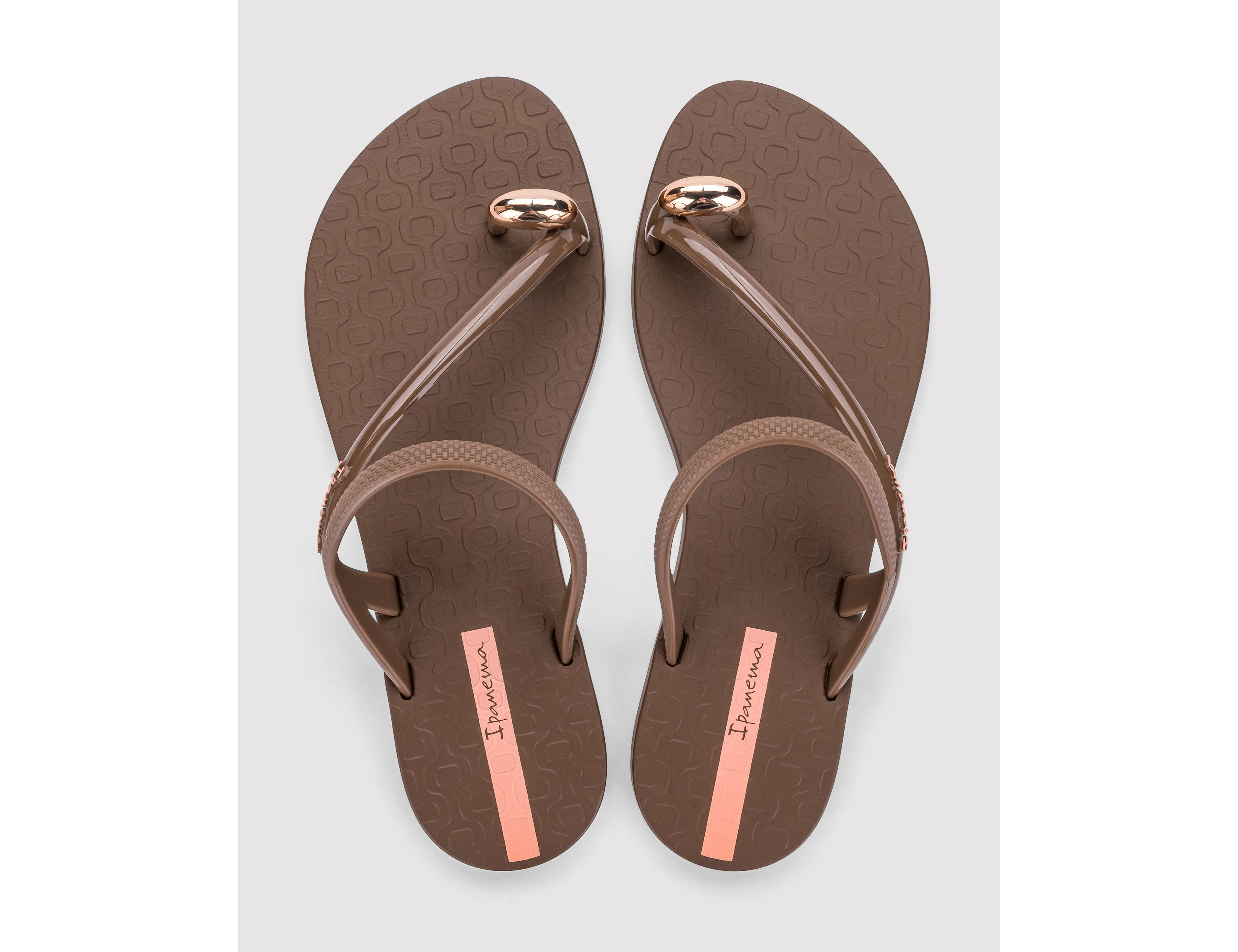 A Ipanema Glam Ring é renovada, devido à forte tendência dos enfeites metálicos no mercado. Apresentamos o modelo em uma nova proposta de slide, mantendo seu enfeite metálico de dedo e o seu elegante cabedal. A novidade fica por conta da adição de uma textura nas tiras, enquanto a tira principal permanece polida, criando um contraste moderno e refinado de texturas.