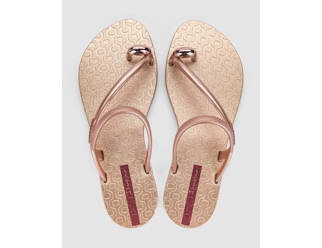 A Ipanema Glam Ring é renovada, devido à forte tendência dos enfeites metálicos no mercado. Apresentamos o modelo em uma nova proposta de slide, mantendo seu enfeite metálico de dedo e o seu elegante cabedal. A novidade fica por conta da adição de uma textura nas tiras, enquanto a tira principal permanece polida, criando um contraste moderno e refinado de texturas.