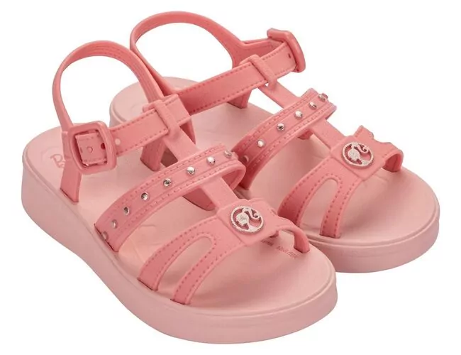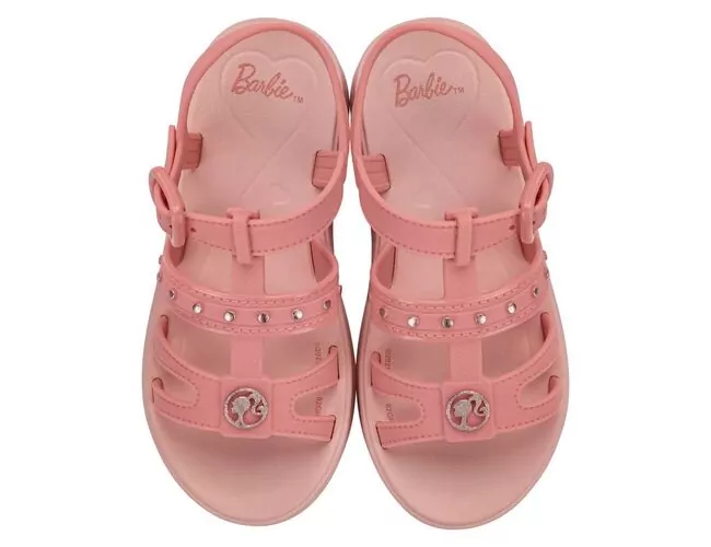 A nova sandália de Barbie possui um solado com linhas e altura de um produto anabelado, que promete ser o queridinho das fashionistas na próxima estação! O cabedal é representado por em códigos de design que funcionam muito bem comercialmente, a gáspea faz referência a gáspea H, juntamente com uma Salomé que traz maior segurança ao calce, já para as tiras do peito do pé a sobreposição das tiras, explora as texturizações, ganhando ainda mais valor, com um toque de gótico suave presente através das tachas com hot Stamp. No centro das tiras frontais, destaque para a Silohead de Barbie com Hot Stamp dando um efeito de joia passante.