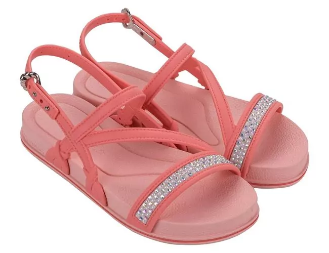 O mais recente sandália da Grendha Bela cativa com a sofisticação da papete ricamente adornada. A luminosidade dos strass se entrelaça com a opulência das pérolas, evocando a exuberância e a serenidade do mundo subaquático. Para incorporar a tendência do fundo do mar, já confirmada para 2025, desenvolvemos uma fivela em formato de concha, agregando ainda mais valor ao produto.