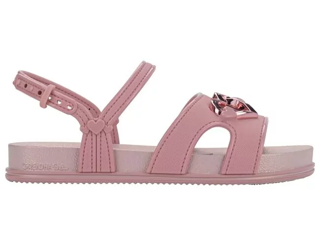 Com design inspirado no Romance Açucarado tendência para o universo infantil de Bela a nova sandália une estilo e conforto em cada detalhe. O destaque fica por conta do aplique em forma de coração, que traduz a tendência das correntes com um toque romântico. A joia metalizada, posicionada na lateral do pé, agrega valor ao modelo. A sola anatômica Acolher já reconhecida na linha Grendha Bela finaliza o visual com conforto e um design acolhedor.