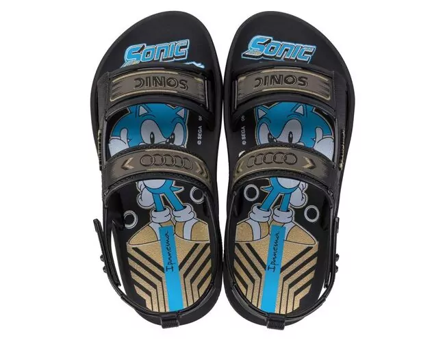Aproveitando o sucesso da licença ampliamos a oferta de arquétipos oferecidos para os meninos e apresentamos a Papete Sonic, um produto comercial, confortável e seguro. Com texturas de alta definição que mimetizam o visual da papete esportiva. As grafias aplicadas na palmilha e tiras amplificam a entrega e destacam o logo.