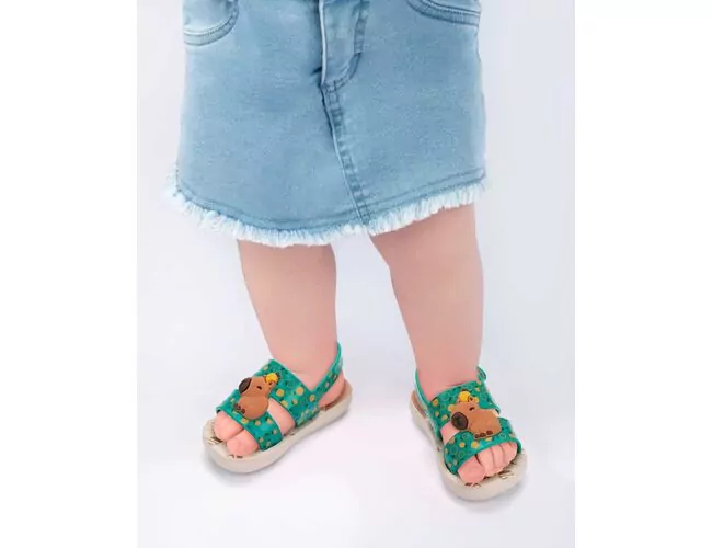 A nova sandália Mundo Bita Grendene Kids une duas paixões do nosso querido personagem: O amor e respeito aos bichinhos e o Universo Musical. Pensando nisso, abordamos o tema da Capivara, que vem ganhando força no mercado brasileiro infantil e já aparece nas pesquisas como um dos elementos preferidos das crianças! Também temos uma versão ressaltando o personagem! Esses dois temas transmitem toda a fofura e ludicidade do Mundo Bita.