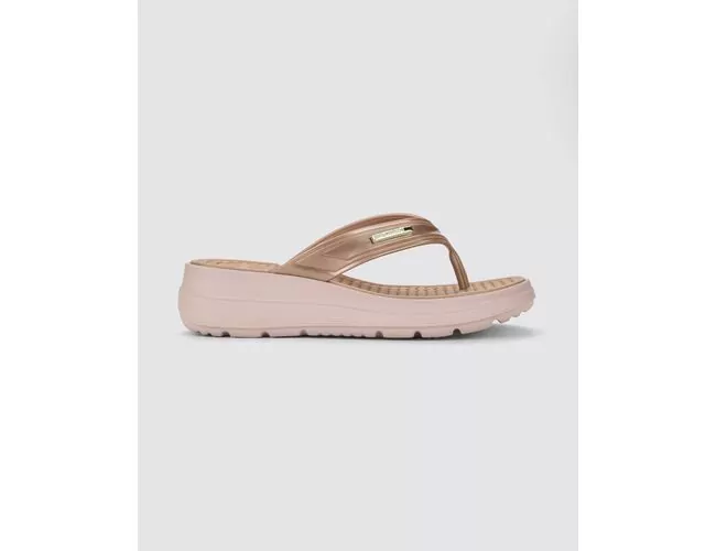 O tamanco com salto Anabela, já amplamente consolidada na marca, garante conforto e praticidade através da palmilha massageadora. Nesta nova versão, o produto ganha um cabedal renovado, com um enfeite minimalista aplicado à lateral externa, que adiciona um toque de brilho ao design.
