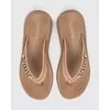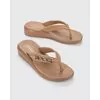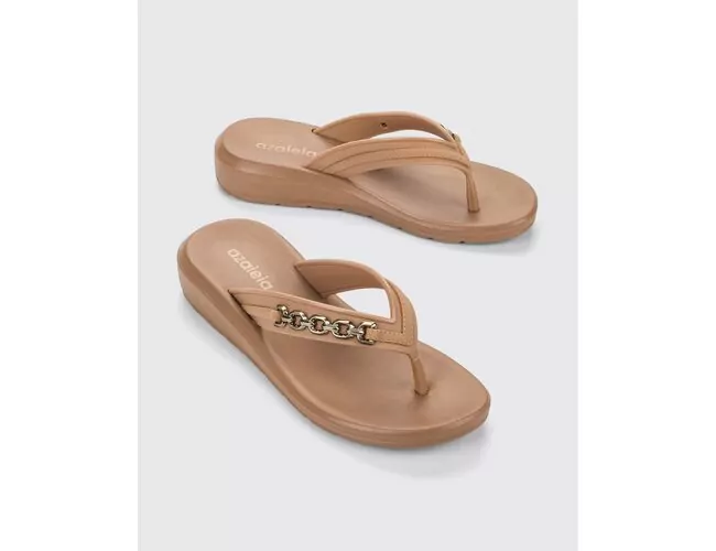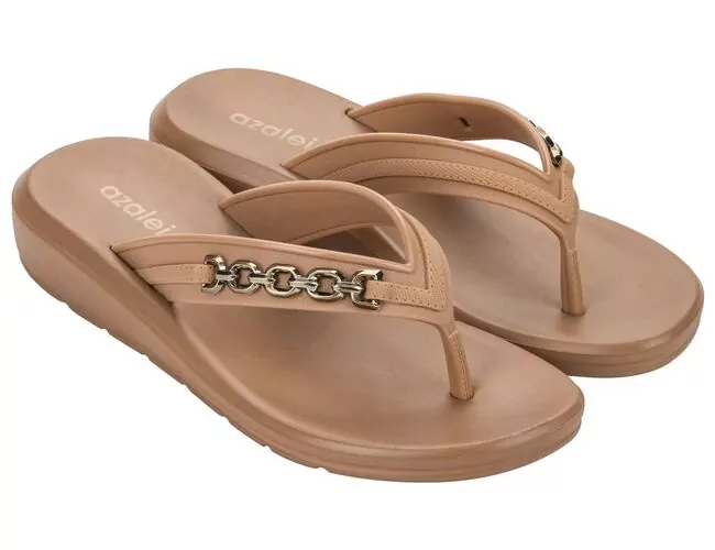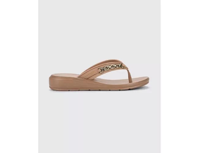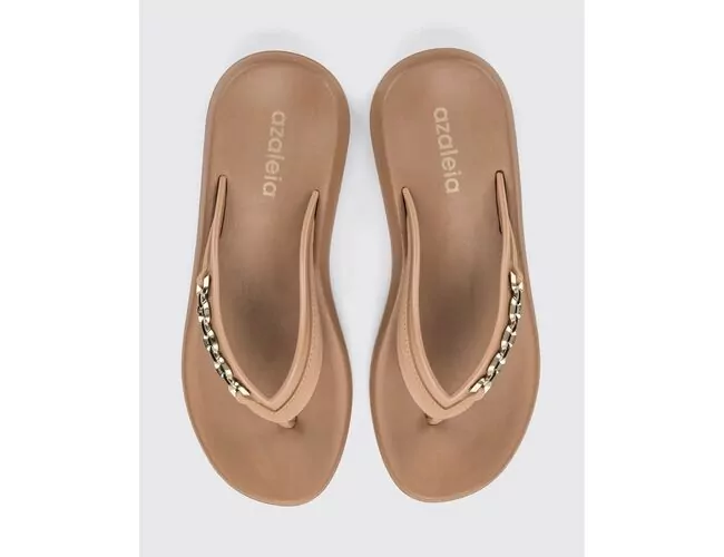 Um retorno notável nas coleções de verão, as correntes são essenciais porém nada discretas, ganhando protagonismo. Essa tendência atemporal nos calçados se reinventa com novos formatos e aplicações. O solado anabelado ultraleve, de altura mediana, combina conforto e elegância, destacando a identidade da marca através de uma assinatura em evidência.