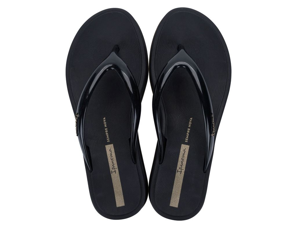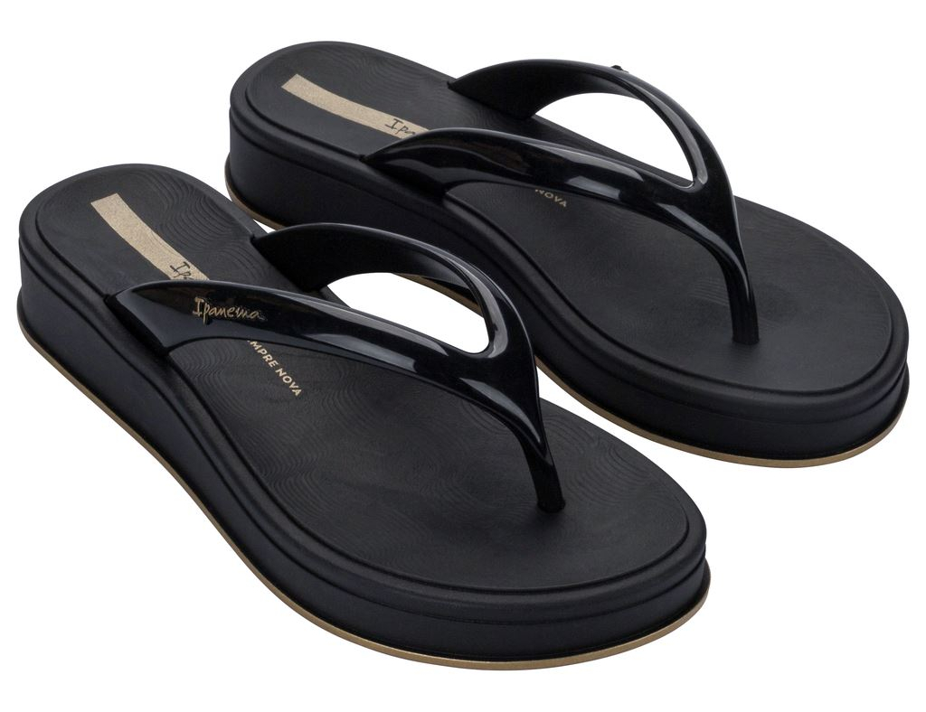Os produtos de plataforma estão em alta na moda, em especial os produtos de dedo com o cabedal mais largo. Esse arquétipo possibilita que o seu uso seja mais versátil que um chinelo de dedo básico, permitindo que a consumidora o use em diversas ocasiões e ambientes, se sentindo confortável e na moda, sem estar simples demais. Traz cor contrastante em detalhes, como na tarja da palmilha e na soleta, uma das variantes traz nas tiras. Na palmilha das solas, uma textura inspirada na calçada da Ipanema e nas ondas do mar, de uma forma geométrica e padronizada.