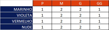 Confira a distribuição de tamanhos e cores em cada caixa: